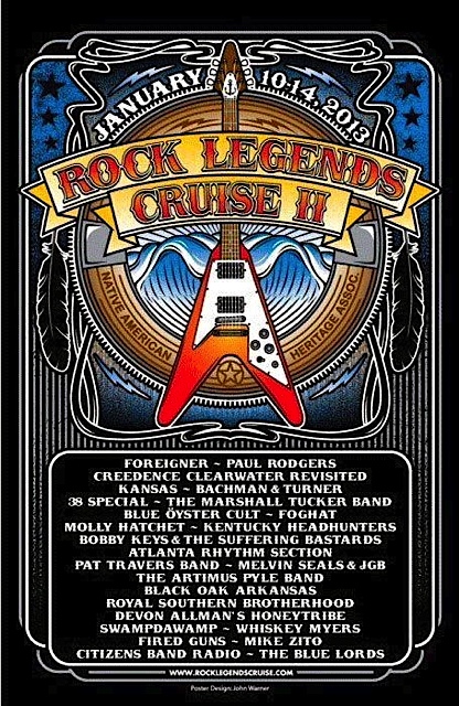 It took me a long time to get around to talking about this, but it has been a very busy year. Last February, the Bachman and Turner Band participated in the Second Rock Legends Cruise. It was a fun time for all, and the feedback from our fans on board was great. Randy, Fred, Marc, Brent and Myself all enjoyed the warm weather and scenery. The following groups participated: